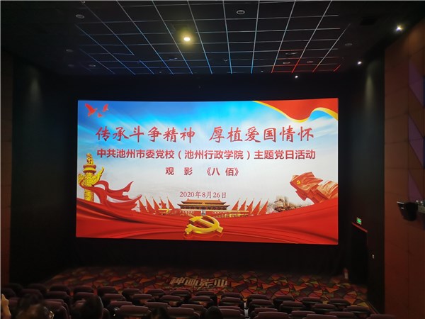 为加强校(院)党员干部职工爱国主义教育、弘扬爱国主义精神,勿忘国耻、居安思危,在中国人民抗日战争胜利75周年纪念日前夕,8月26日晚,校(院)机关党委组织全体党员职工开展“传承斗争精神·厚植爱国情怀”主题党日活动——集中观看爱国主义电影《八佰》。