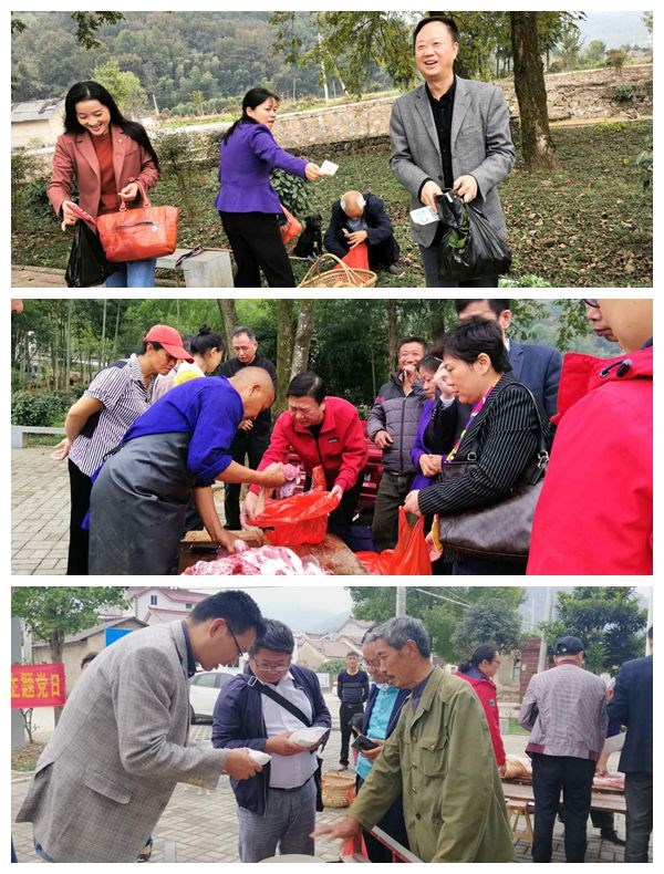 面对面直接消费,心连心助力脱贫。贫困户从村部得知开展消费扶贫的消息后,纷纷将自家的猪肉、葛粉、柿子、红薯、青菜、萝卜等农产品拿出来摆在村部门前广场销售,帮扶干部现场踊跃认购,全部农产品销售一空。