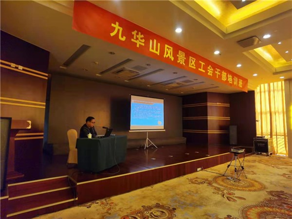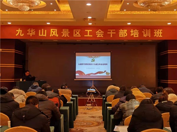 12月17日,青阳县学习贯彻党的十九届五中全会精神宣讲团成员、青阳县委党校副校长吴在有赴九华山风景区工会宣讲党的十九届五中全会精神,九华山风景区工会党员干部参加报告会。