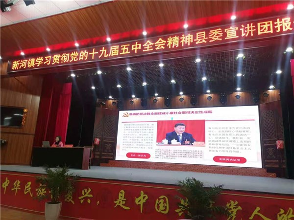 12月16日,青阳县学习贯彻党的十九届五中全会精神宣讲团成员、青阳县委党校高级讲师梅茹赴新河镇宣讲党的十九届五中全会精神,新河镇班子成员、全体党员干部参加报告会。