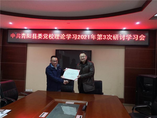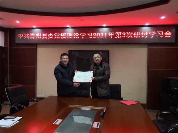 近日,青阳县委党校教师王前荣和张翼入选安徽省委讲师团专家库基层宣讲专家库成员,受市委讲师团委托,由青阳县委党校向两位老师颁发了安徽省委讲师团专家库基层宣讲专家聘书。