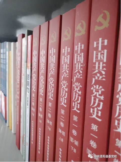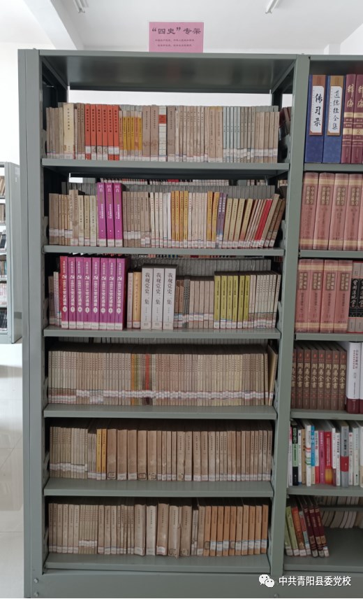 青阳县委党校图书馆“四史”专架包括“四史”系列图书52种、268余册,为充实馆藏图书数量,提高馆藏图书质量,县委党校建立了图书更新制度,定期选购精品图书,丰富党史学习教育内容。
