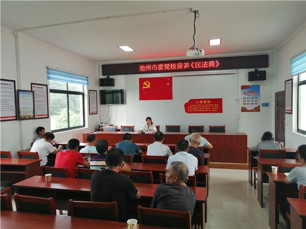 随后,校(院)青年教师张秀秀结合自己驻村工作经历,以《民法典》热点解读为主题,深入浅出地阐述了《民法典》是一部适应新时代中国特色社会主义发展要求,符合我国国情的法律。她还现场解答了民间借贷、征地拆迁、遗产继承、合同签订、电信诈骗等关乎群众切身利益的法律热点问题,引导党员群众增强法治意识,正确维护自己的合法权益。