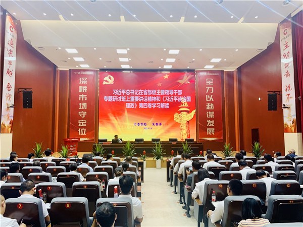 为促进习近平新时代中国特色社会主义思想往深里走、往实里走、往心里走,中共池州市委党校(池州行政学院)充分发挥理论宣传主力军的作用,及时组织全体教师开展集中学习、认真选题、精心备课,选派骨干教师参加市委“举旗帜·送理论”学习贯彻习近平总书记在省部级主要领导干部专题研讨班上重要讲话精神、《习近平谈治国理政》第四卷专题宣讲。