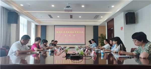 9月16日,徽州区委组织部部务会成员、党校常务副校长、三级调研员潘丽娟带队来校(院)考察新校区校园建设及运营管理经验做法。常务副校(院)长石兴江,教育长唐维,办公室主任梅艳红、副主任洪丽君,物业、学员服务中心管理单位负责人出席座谈会。