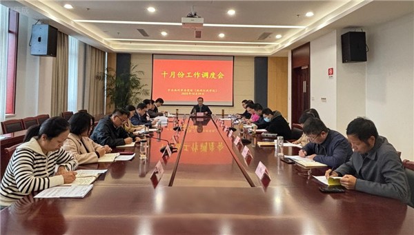 10月29日,校(院)召开10月份工作调度会。常务副校(院)长刘保权主持会议并作总结讲话,校(院)领导韩辉、胡亚麟、黄文生,一级调研员朱春泽和各处室负责同志参加会议。