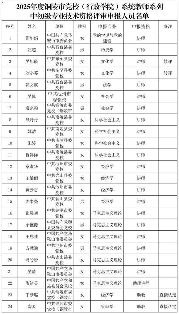 附件:2025年度铜陵市市党校(行政学院)系统教师系列中处级职称评审委员会评审通过人员名单
