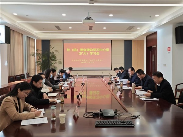 11月27日上午,校(院)委会理论学习中心组召开学习会,集中学习研讨党的二十届四中全会精神,常务副校(院)长刘保权主持会议并讲话。校(院)领导韩辉、胡亚麟、黄文生,一级调研员朱春泽和理论学习中心组成员参加会议,各党支部书记列席会议。