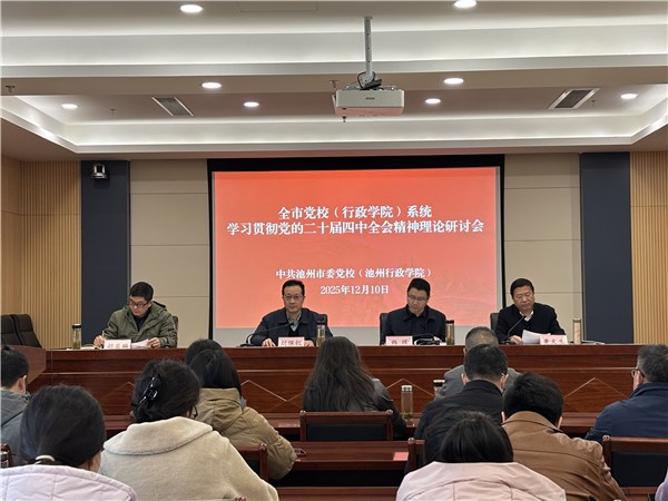 12月10日,市委党校(池州行政学院)举办全市党校(行政学院)系统学习贯彻党的二十届四中全会精神理论研讨会。常务副校(院)长刘保权、校(院)委班子成员,各县(区)委党校分管科研工作的校领导、科研部门负责人、入选论文作者及市委党校全体教研人员参会。会议由校(院)委委员、马基教研室主任黄文生主持。