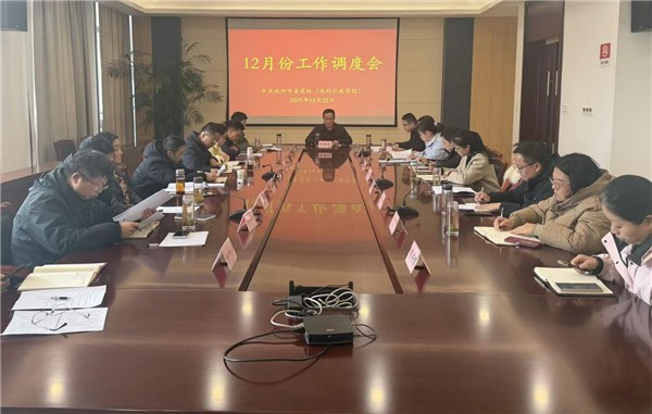 12月25日,校(院)召开12月份工作调度会。全面总结全年工作成效,研究部署下一阶段重点任务。常务副校(院)长刘保权主持会议并作总结讲话,校(院)领导韩辉、胡亚麟、黄文生,一级调研员朱春泽和各处室负责同志参加会议。