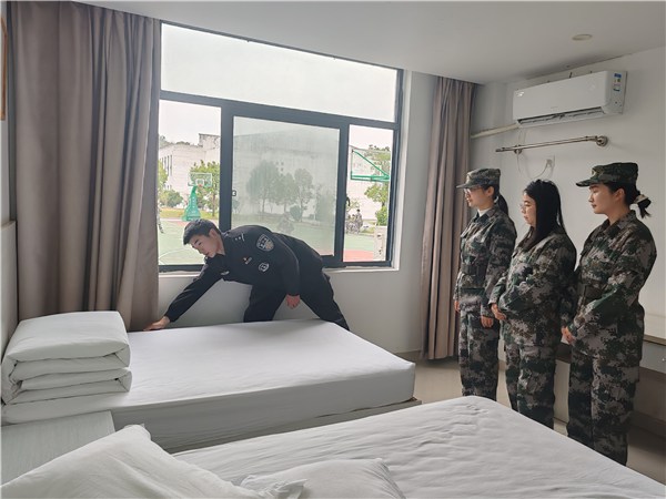 内务整理环节,教官亲自示范床褥折叠、物品摆放、卫生保洁等标准流程,手把手传授内务整理技巧。学员们认真观摩、反复练习,严格按照军事化标准规范寝室布局,确保生活用品摆放整齐划一,寝室环境干净整洁。通过精细化内务管理,学员们进一步强化了规则意识和自律意识,把严谨细致的作风融入日常点滴。